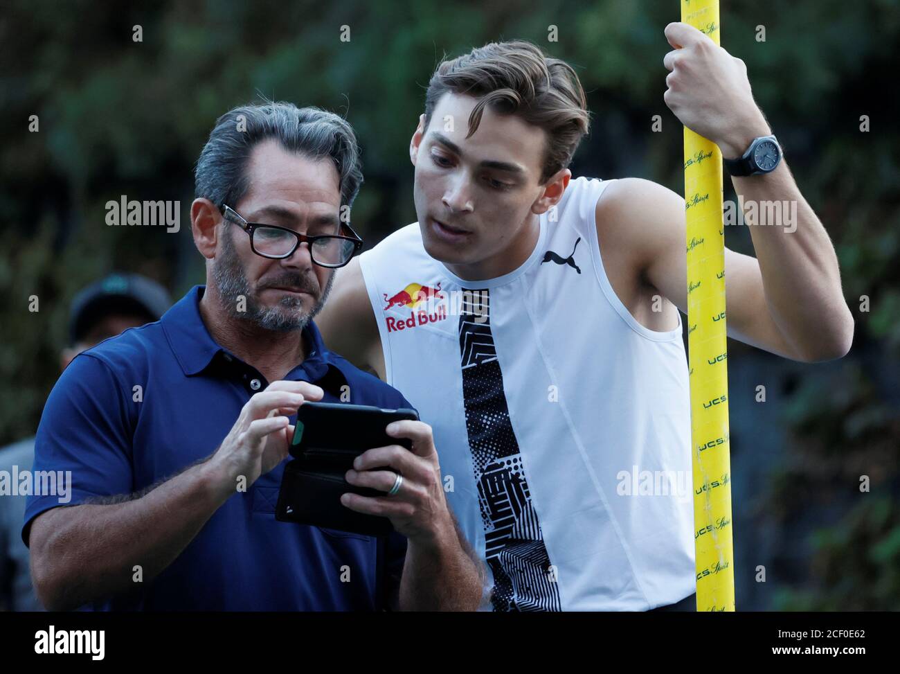 Leichtathletik Diamond League Lausanne Lausanne Schweiz 2 September 2020 Schwedens Armand Duplantis Mit Seinem Vater Wahrend Der Pole Vault Reuters Denis Balibouse Stockfotografie Alamy